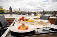 Podzimní program v restaurantu malebně umístěném na malostranském břehu Vltavy odstartuje Halloween. Od 24. října bude možné okusit nevšední lahůdky z temně laděného menu, které nabídne dýňový hummus s mozzarellou a olivami pod názvem „Hrobová hlína“, černou polévku z pečeného lilku s „lebkovými“ krutony, mořského vlka s inkoustovou omáčkou či grilovaná kachní prsa s višňovou omáčkou a fialovým bramborovým pyré. Chybět nebude ani variace zombie dezertů.